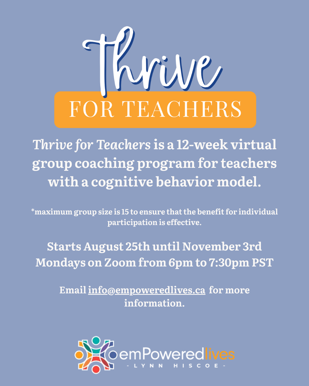 Lynn runs a 12 week group therapy program in Canada specifically for teachers. She charges $1200 dollars because in Canada all therapists receive $1200 a year to spend on therapy and mental health support however they choose. I spoke to my therapist in LA who was a teacher for 7 years before working on their LMFT about her program.